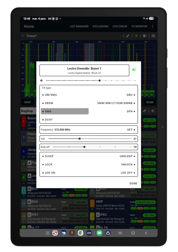 TX Control is accessible from the home screen of TXAdvance, and the app saves dweedle settings for each Lectrosonics transmitter.